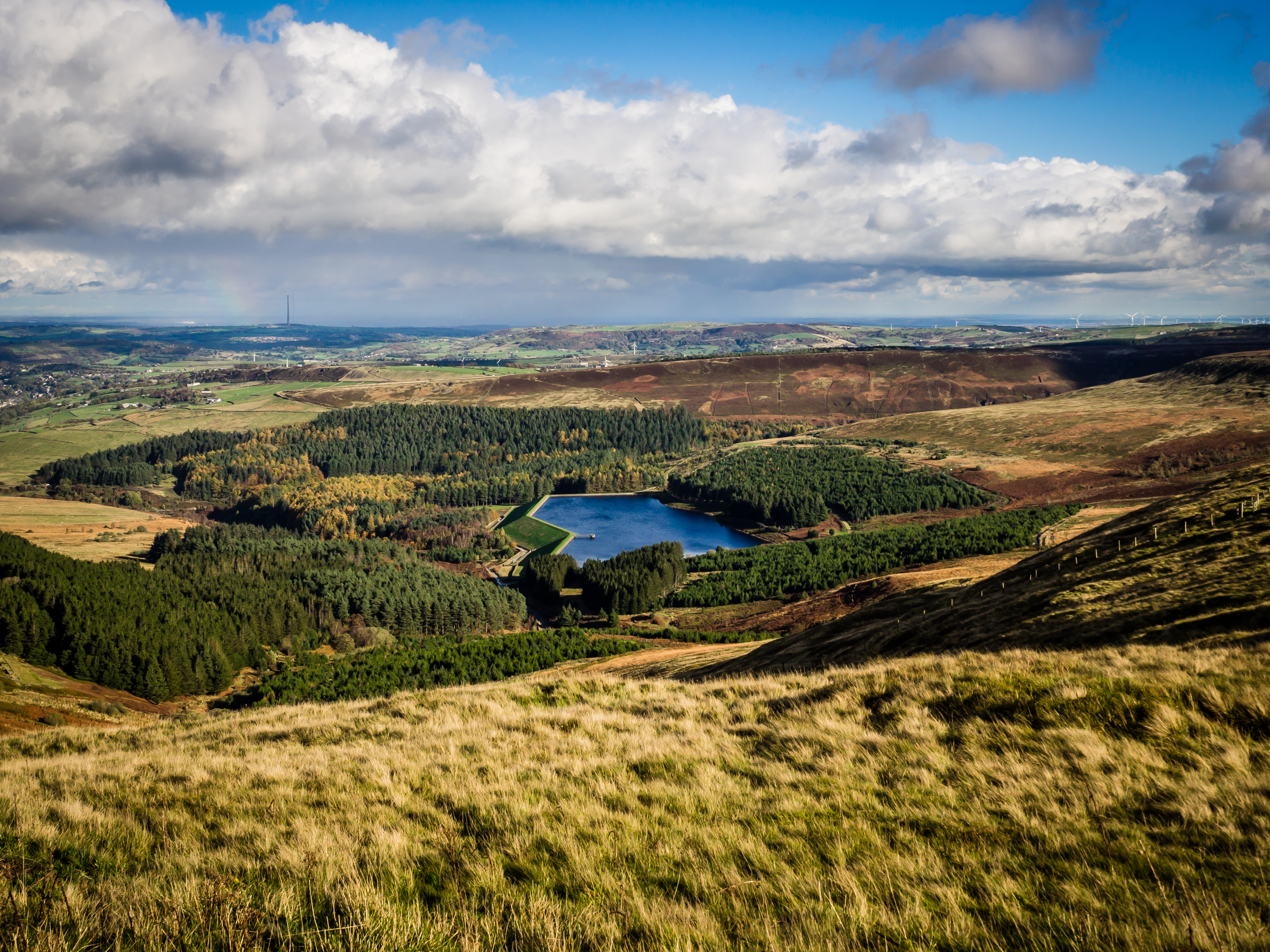 Report on the Holme Valley WalkWhen it was all over we drank pints of Boondoggle bitter at the Fleece Inn, Holme, a beer which according to Google, with or without a Dongle, refers in its name to "an unnecessary, wasteful, or fraudulent project". I daresay none of us knew what we were drinking at the time, otherwise someone might have referred to the walk which we had just completed as 'a right old boondoggle'. Wasteful hardly, except in terms of expenditure of energy, but certainly unnecessary as we could have each stayed at home, gazing out of the window and feeling relieved that we hadn't gone ahead with a wet, windy and very muddy wander around the moors and reservoirs of Yorkshire. But what about fraudulent? Well, no one was fleeced, except in the pub at the end, but in his communication inviting members to join the Saturday walk, the leader had strongly implied that the probability of climbing the steep hill to Holme Moss was lower than the cloud base enveloping the TV mast itself that very morning. So how did we find ourselves queuing up at a gate in a fence next to the viewing point car park, queuing to wade through a Stygian pool of ankle-deep black liquid mud in order to reach the dry salvation of the main road crossing the moor at the top and leading back down to the valley at the bottom? One member of the team asked this very question, not in such terms, but certainly implying that five members had been duped into believing that no such ascent would be made that day.